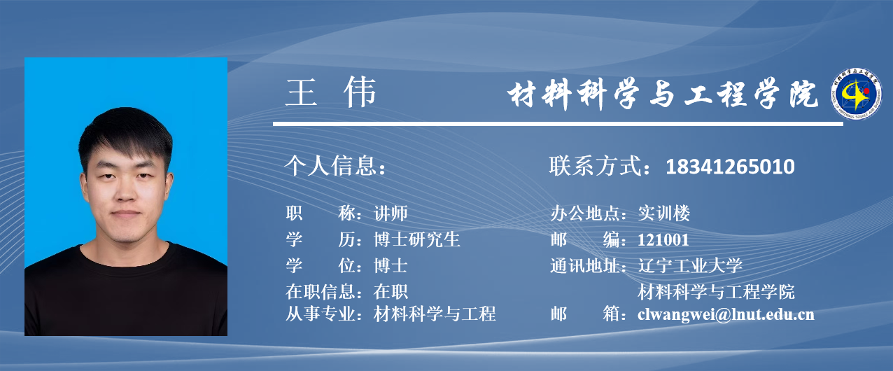 王伟,男,1994年生,工学博士,讲师,硕士生导师,博士就读于大连交通大学,2024年获大连交通大学博士学位。博士期间,在Rare Metals、Nano Research和Chemical Communications等期刊以第一作者发表SCI论文4篇。硕士期间申请授权发明专利2项,实用新型专利1项。